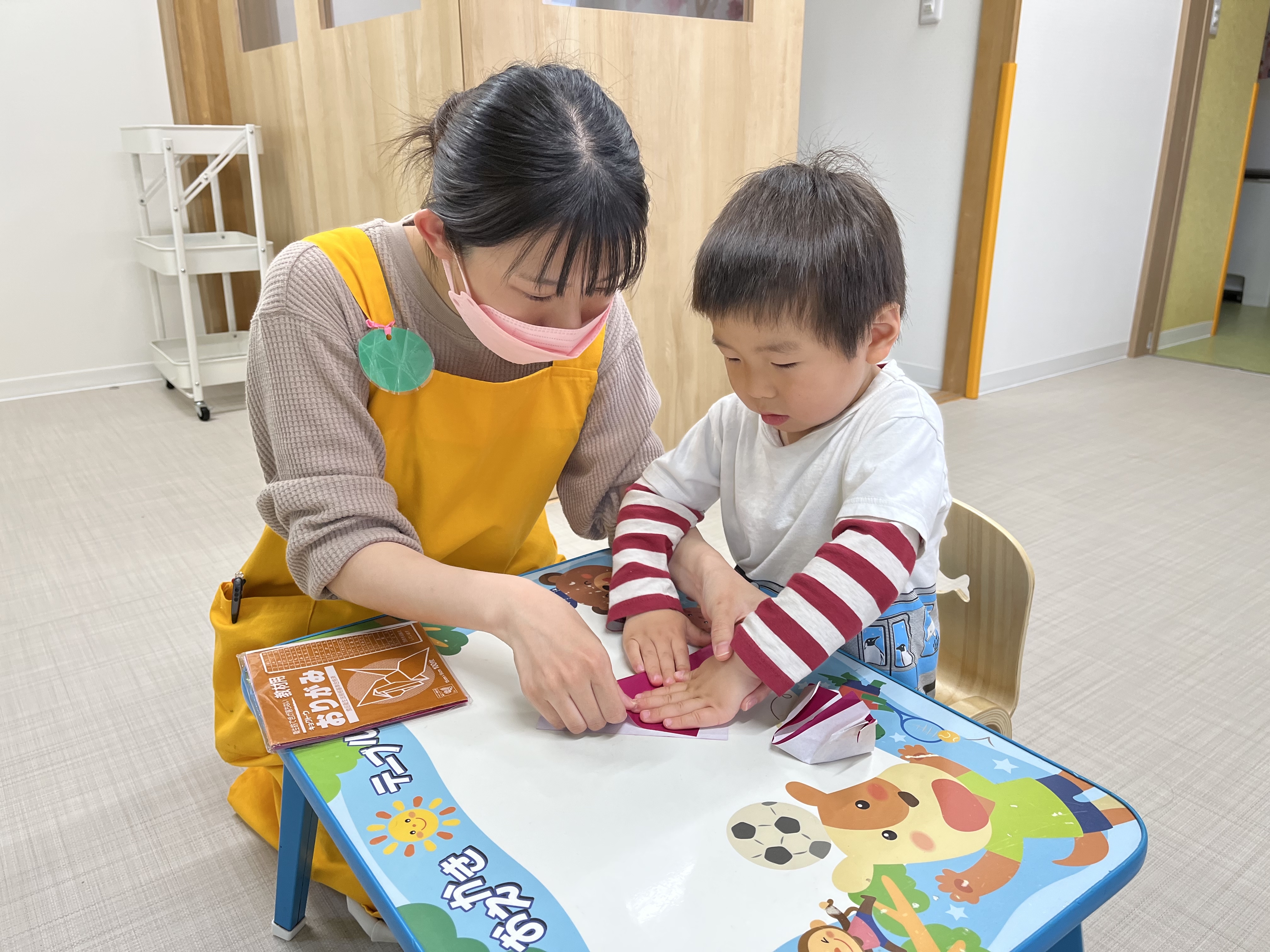 当保育園では3歳迄の大切な時期に、自立を促しながら子ども達の成長をご家庭と一緒に見守りたいと思っています。また、この時期は英語耳を育てる一番良い時期でもあるため、週に2回の英語のレッスンを行なっています。