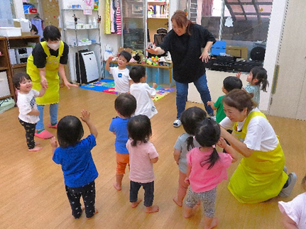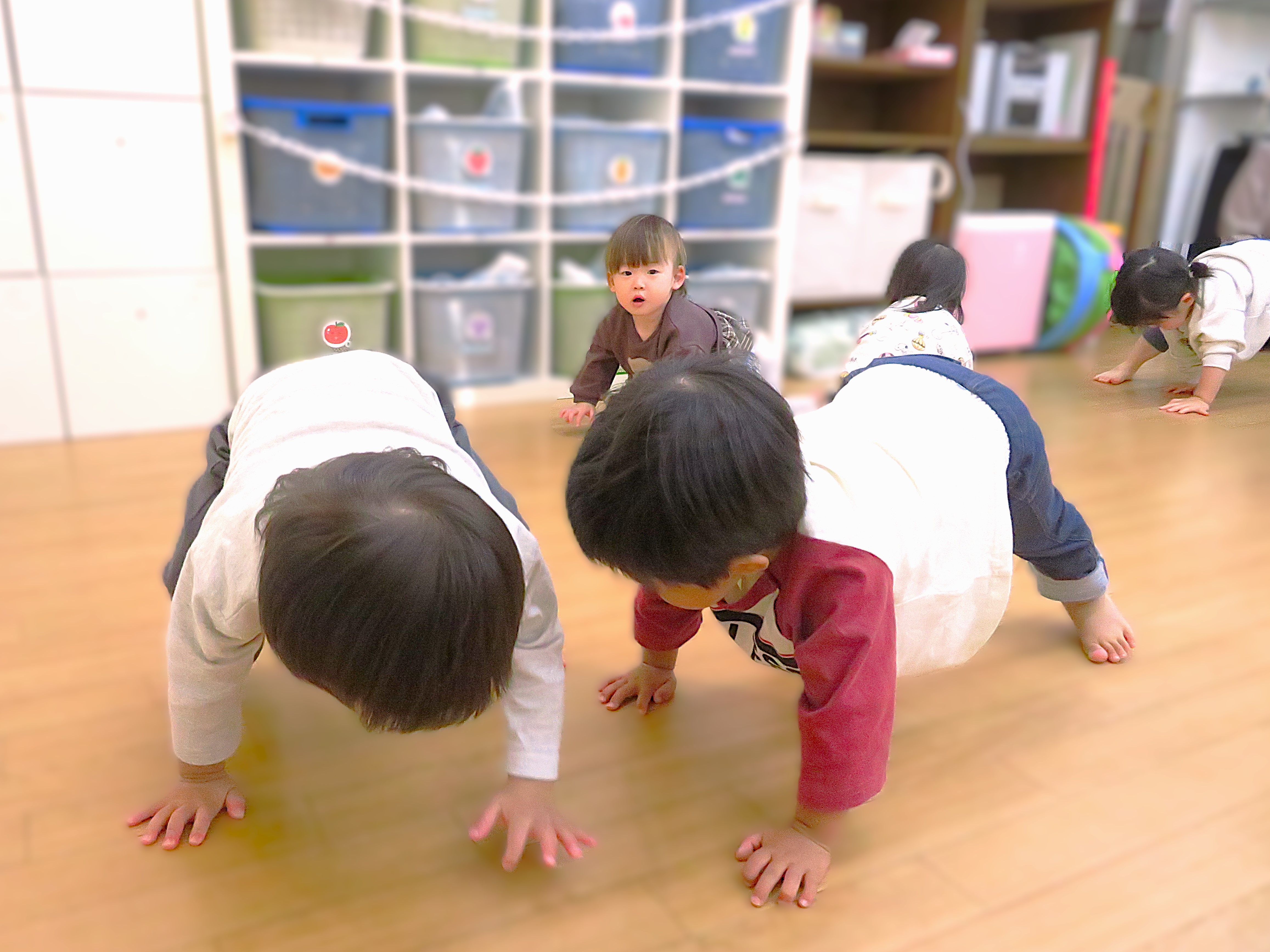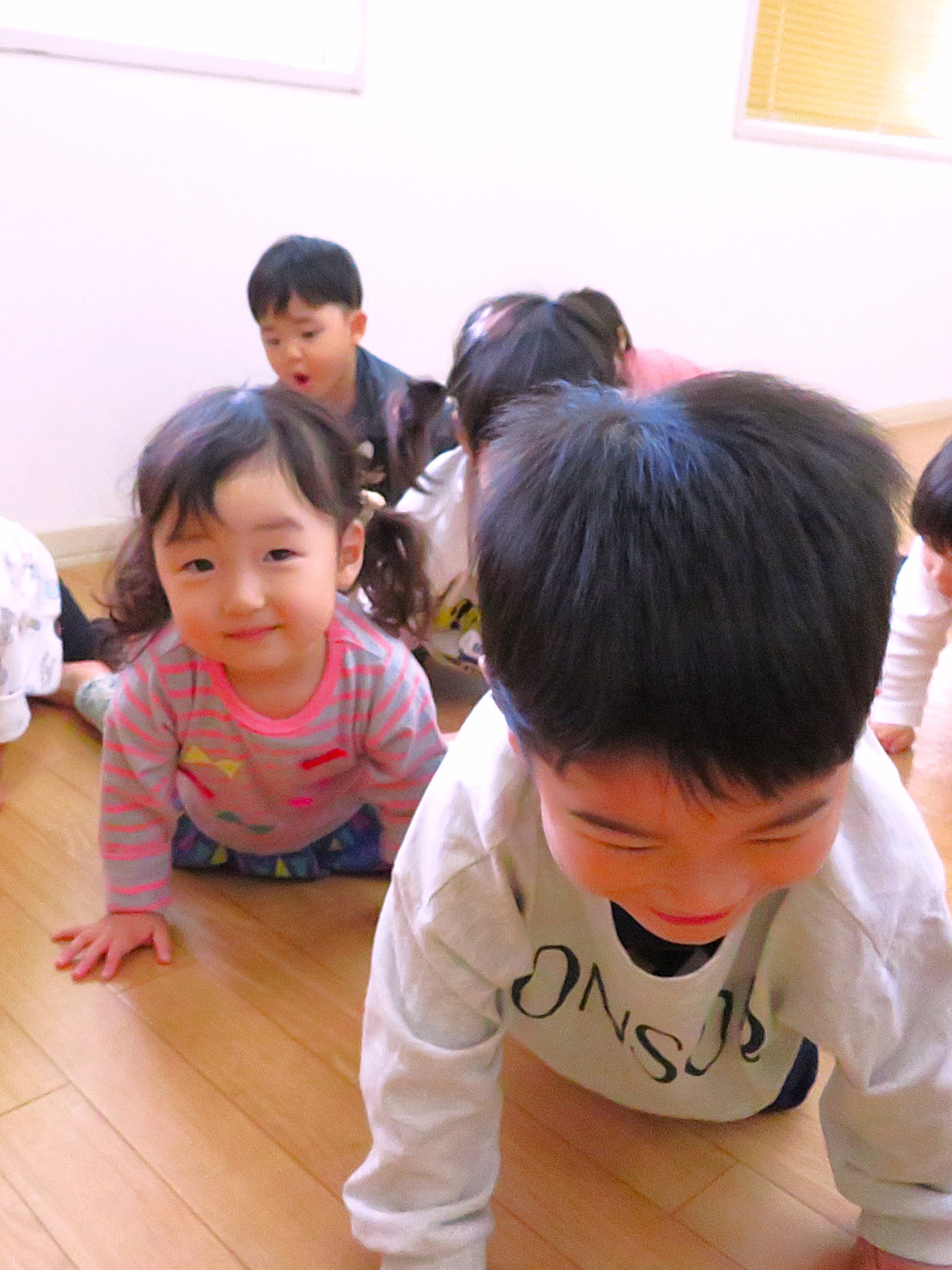 さくらさくらんぼのリズムに合わせて身体を動かす活動を通し、全身の筋肉をバランスよく発達させます。
