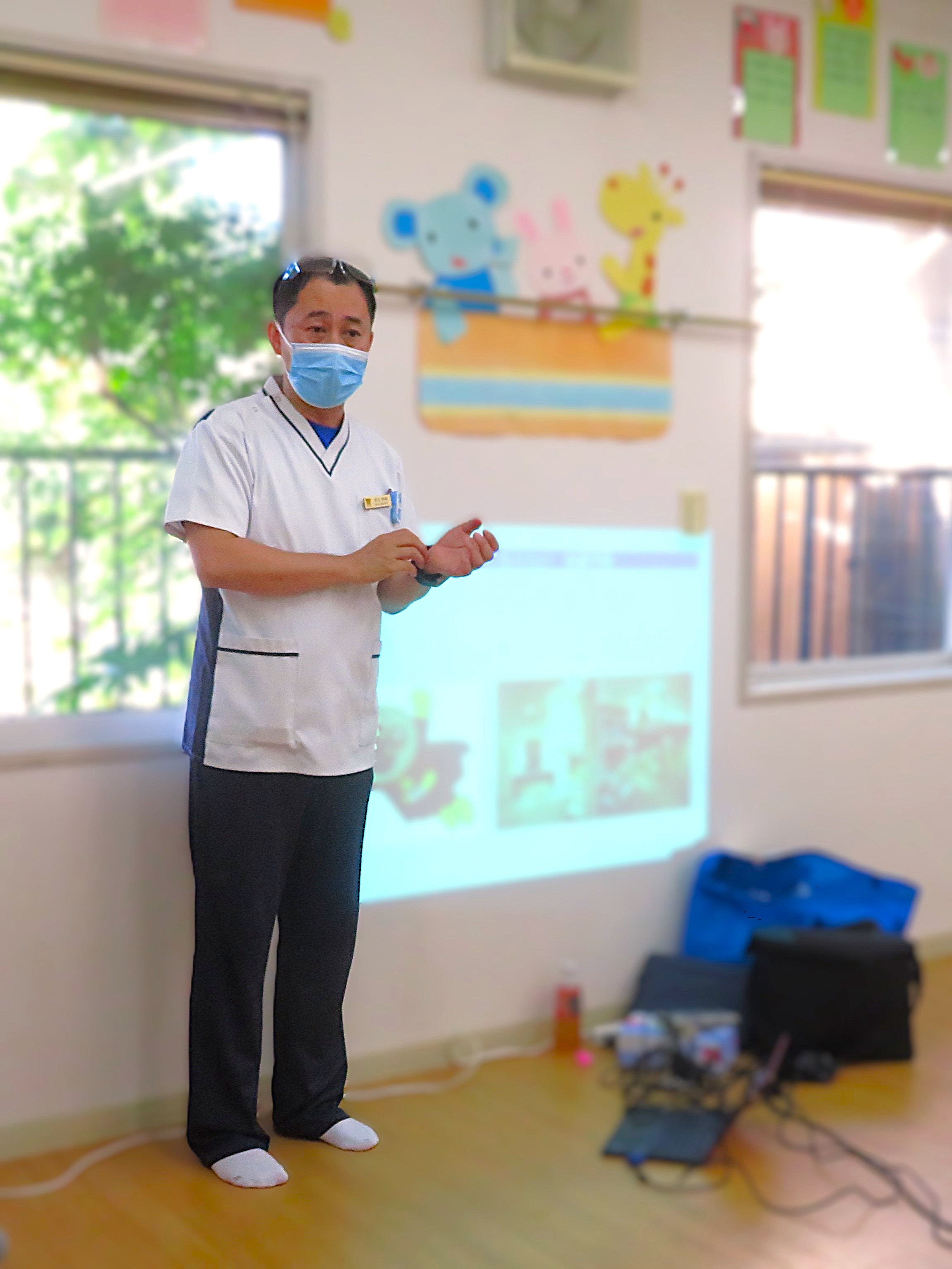 「西宮北口歯科口腔外科」より院長の児玉先生にお越し頂き、虫歯予防や口腔内の事故対応について、また、上手な歯みがきの仕方など、保護者の方の疑問にも丁寧に説明してくださいます。